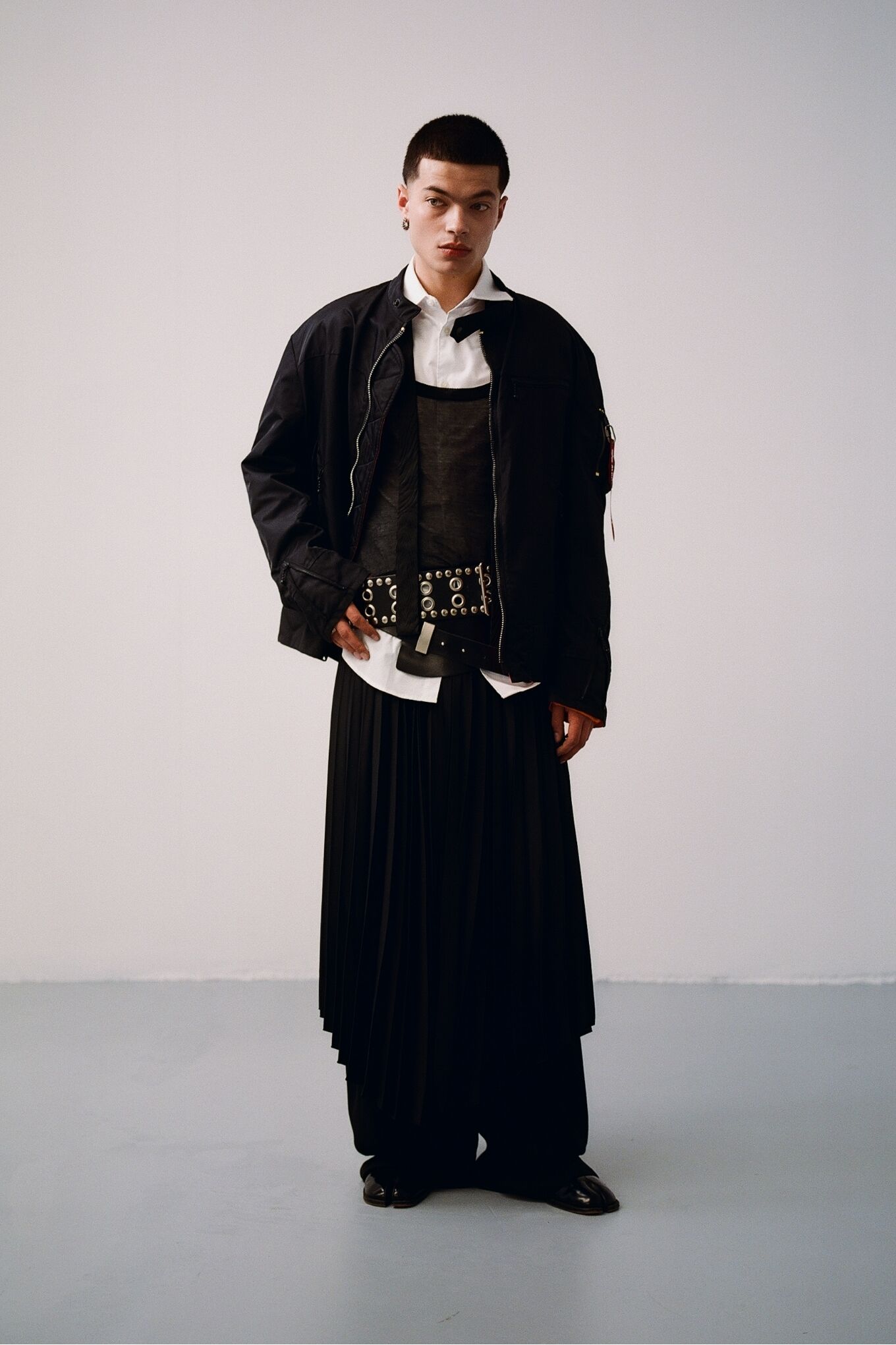 A fusion of Japanese avant-garde and military precision. Rooted in Alpha’s outerwear heritage, Junya Watanabe has designed a biker jacket with sharp tailoring and minimalist construction.